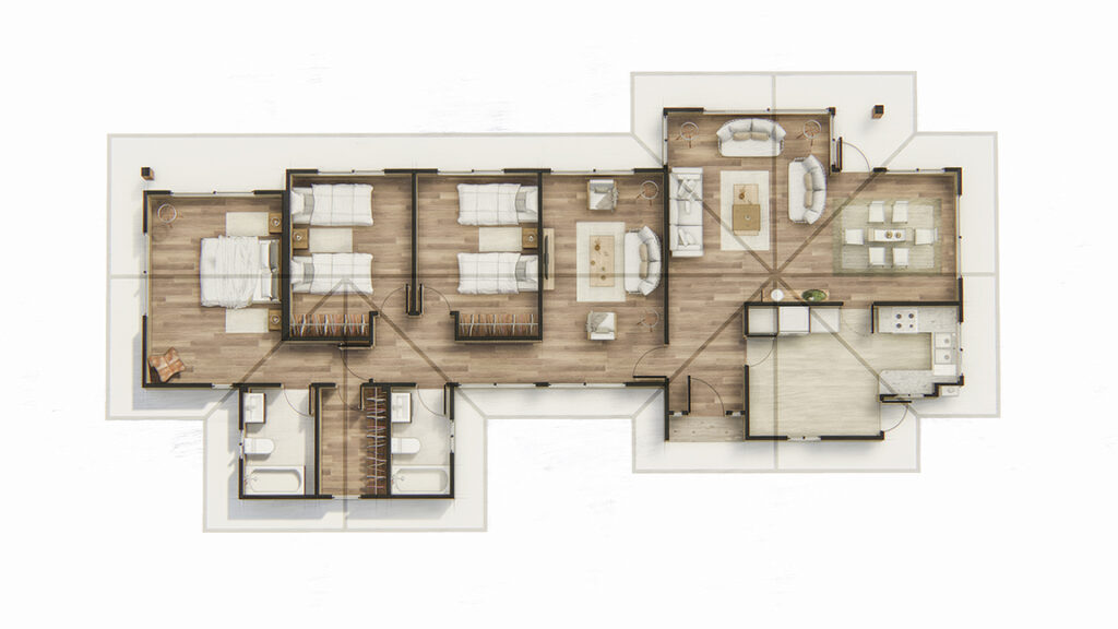 • Dormitorio y Baño de Servicio o Logia y Despensa